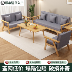 北欧实木沙发客厅小户型经济型家具组合简约现代棉麻布艺云朵沙发