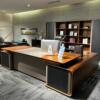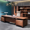 办公家具大班台老板桌新中式总裁桌贴实木皮油漆经理主管桌椅组合
