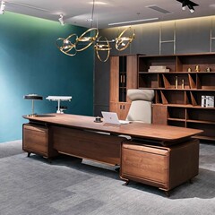 新中式实木办公桌老板桌简约现代胡桃木总裁桌大班台总经理办公桌