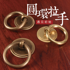 中式圆形隐形抽屉铜拉手简约中药柜门铜环茶叶罐榻榻米铜拉环把手