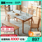 岩板小户型折叠餐桌家用可伸缩实木餐桌椅组合现代简约轻奢饭桌子