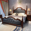 美式实木床别墅家具主卧双人床高端大气复古真皮软包床金丝柚木