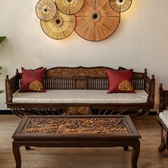 中式泰实木罗汉床古典柚木东南亚风格家具客厅沙发床异丽雕式仿古