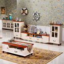 美式电视柜茶几组合地中海风格大小户型客厅欧式实木田园彩绘家具