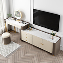 现代轻奢岩板卧室伸缩梳妆台电视柜组合一体收纳家具加镜子化妆桌