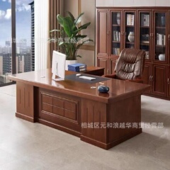老板桌油漆实木大班台贴木皮办公室家具经理总裁桌新中式桌椅组合